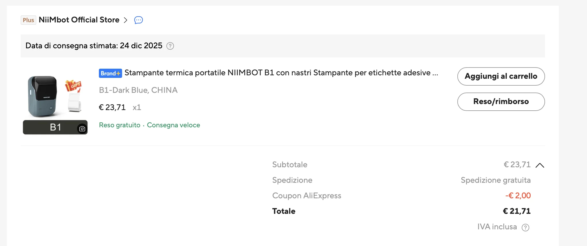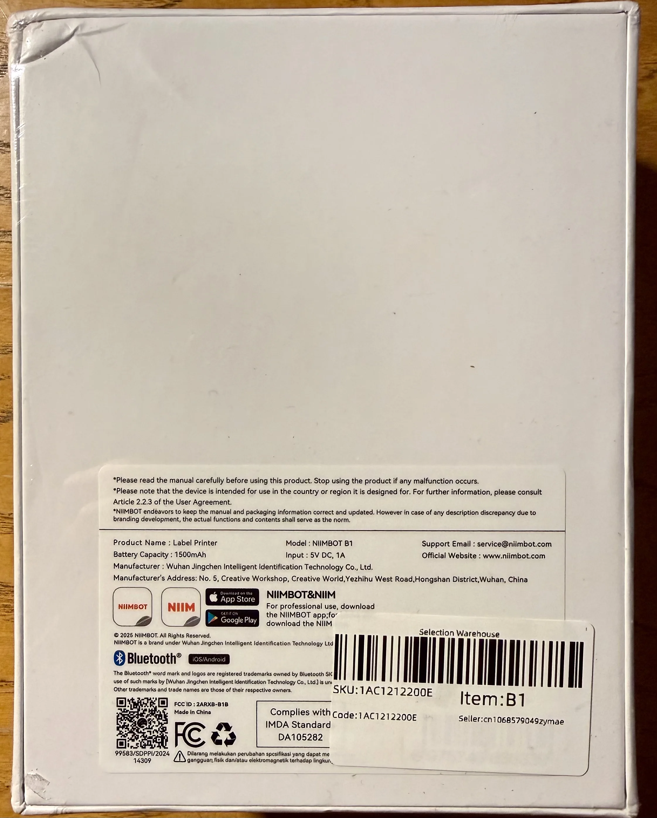 NIIMBOT B1 - Étiqueteuse Thermique Bluetooth Portable (2 Pouces) - Compatible iOS, Android & PC + 3 rouleaux inclus